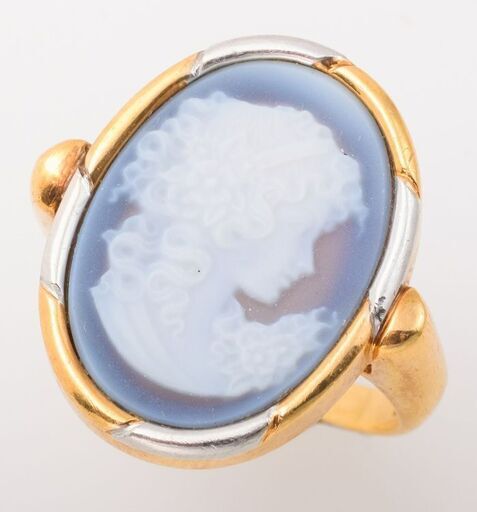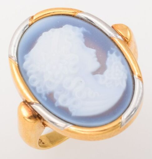 リング: K18/Pt900 ストーン(アゲート・メノウ)カメオ