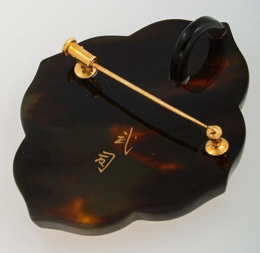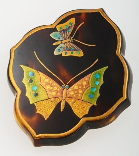 説明: 日本の伝統工芸である、蒔絵の技法で2匹の蝶々が描かれた、ブローチ(ペンダント兼用)です。 作家の松山武司氏については、下記のHPリンクをご覧ください。