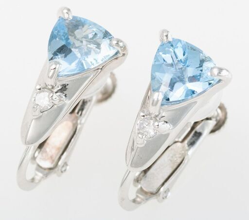 K18WG/K14WG ブルートパーズ・ダイヤモンド イヤリング 品番b23-190