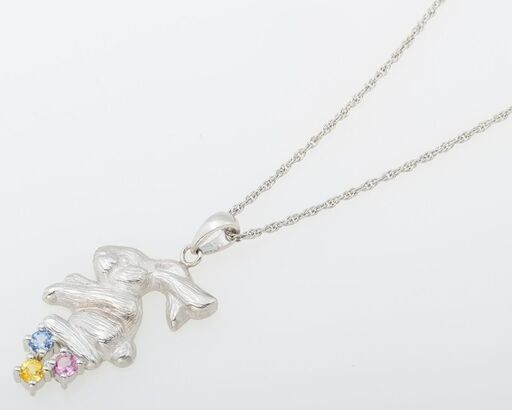 ネックレス: Pt850 ブルートパーズ・トルマリン・シトリン (兎モチーフ)