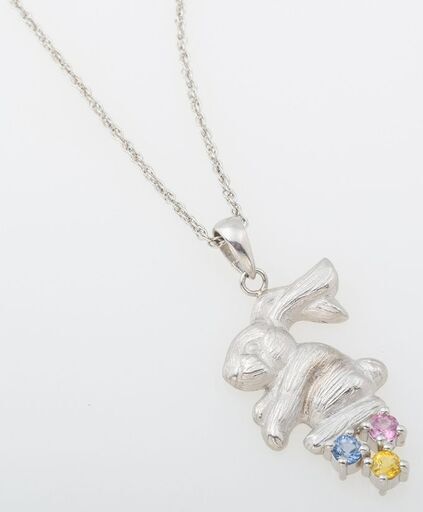 説明: ウサギのデザインのプラチナ(850)の枠にブルートパーズ・トルマリン・シトリンがセットされているマルチネックレスです。 キュートなうさぎモチーフの可愛らしいペンダントで、大人の遊びこころをくすぐる大人可愛いジュエリーです。 自分へのご褒美やプレゼントにもぴったりです。