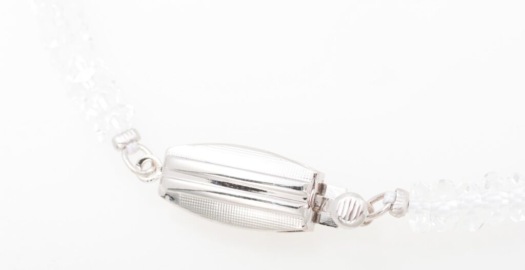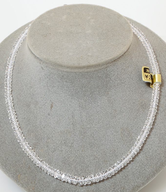 ネックレス: SV 天然水晶 留め具: シルバー (銀) サイズ: 約43.5cm(実寸) 状態: 未使用品です。(商品ランク N) 付属品: 内箱・保証書・開運レプリカ古銭のみ 定価: 22,000円 説明: 水晶(クォーツ)は、古来より「神が作った溶けない氷」として親しまれる、無色透明な代表的なケイ素化合物(石英)の結晶です。 魔除け、ヒーリング、浄化効果を持つパワーストーンとして有名で、4月の誕生石や日本国石としても知られています。 透明なもの以外にアメジスト(紫)やシトリン(黄)などもあり、アクセサリーや精密機械の材料としても利用されます。