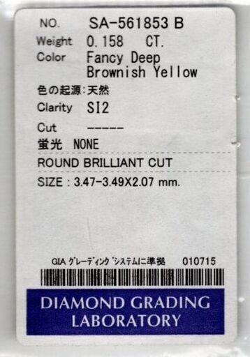 イエローダイヤモンドは0.158ct、ダイヤモンドは合計0.10ctです。