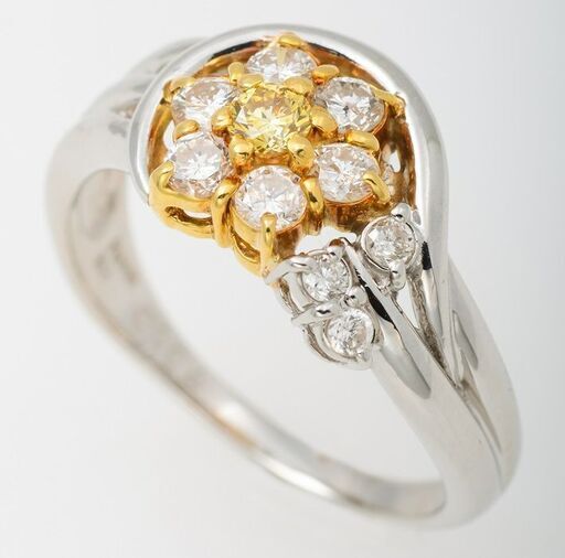 Pt900/K18 ファンシーイエローダイヤモンド・ダイヤモンド リング 品番d23-34