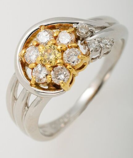 リング: Pt900/K18 ファンシーイエローダイヤモンド・ダイヤモンド