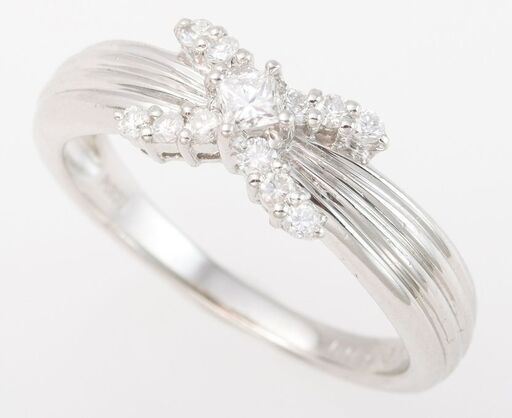 説明: プラチナ(900)の枠に、ダイヤモンドがセットされたリングです。 プリンセスカットの中石は0.09ct、両脇は合計0.17ctで、全部で0.26ctのダイヤモンドが飾られています。 独特のクロスデザインが特徴的な商品です。 ※注意: 基本的に、お客様のサイズに加工してお届け致しますが、デザインの特性上、上下1号以上の加工は、ご希望に添えない(加工が出来ない)場合もございます。 不安のある方は、事前にお問い合わせ願います。