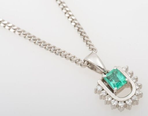 説明: いくつもの時代を超え、人々はエメラルドの美しく澄んだ緑色の輝きに心を奪われ、魅了され続けてきました。 歴史の深いエメラルドは、人々の心を引きつけ夢中にさせた宝石として、世界各地で様々な伝説があり、あのクレオパトラもエメラルドを愛用していた1人とされています。 本商品は、プラチナ(900)の枠に0.32ctのエメラルドがセットされ、周りに合計0.13ctのダイヤモンドが付いたネックレスです。 スッキリしたデザインで、どんなシーンでもお使い頂ける商品です。