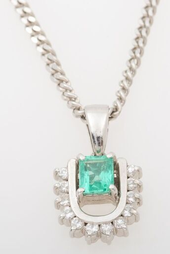 ネックレス: Pt900/850 エメラルド・ダイヤモンド