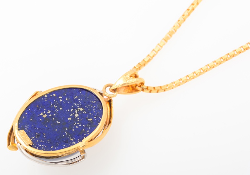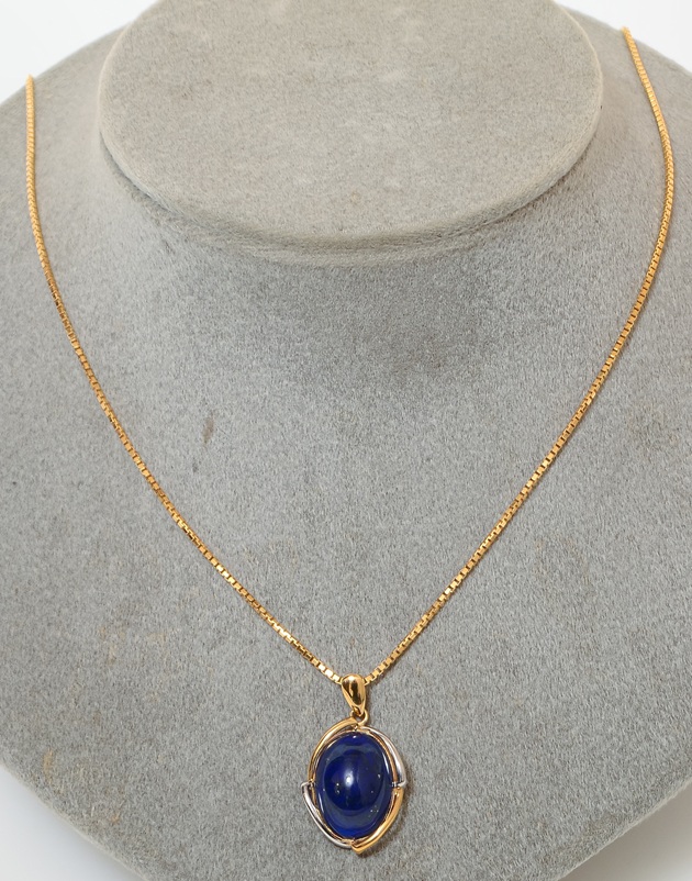 ネックレス: K18/Pt900 ラピスラジュリ 材質: チェーン-イエローゴールド(18金),ペンダント-プラチナ(900)/イエローゴールド(18金) サイズ: 約50cm(実寸) 状態: 質流れの中古品です。(商品ランク A) 説明: 世界最古のパワーストーンとして有名なラピスラズリは、邪気を退け、あらゆる強運を呼び寄せる石と言われています。 本商品はイエローゴールド(18金)とプラチナ(900)の枠にラピスラズリがセットされた、ネックレスです。 チェーンは18金(イエローゴールド)です。 ラピスラズリ特有の深い青色と独特の模様をお楽しみ頂ける商品です。