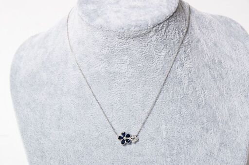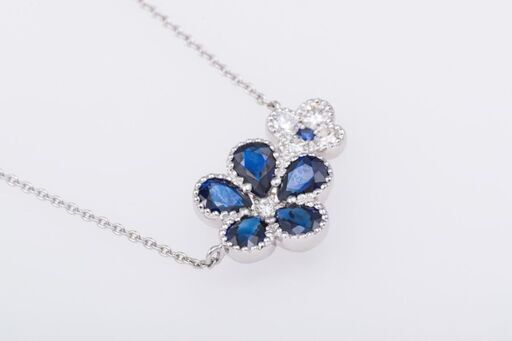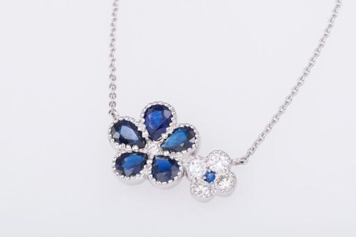 Pt900/850 サファイア・ダイヤモンド ネックレス (フラワーモチーフ) 品番n20-462