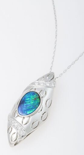 説明: ブルーとグリーンの遊色効果が美しいボルダーオパールです。 本商品は、プラチナ(900)の枠に、1.78ctのボルダーオパールがセットされ、その上下に合計0.14ctのダイヤモンドが飾られたペンダントと、プラチナ(950)のチェーンと組み合わされたネックレスです。 普段使いはもちろん、チョットしたオシャレまで、幅広くお使い頂ける商品です。