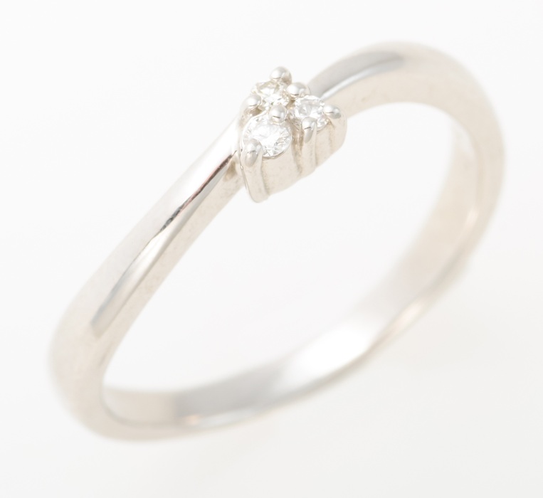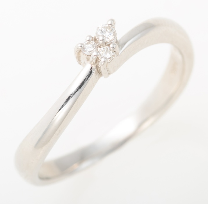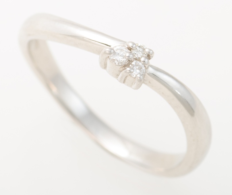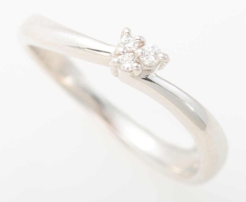 本商品は、プラチナ(950)の枠に、合計0.04ctのダイヤモンドがセットされたリングです。